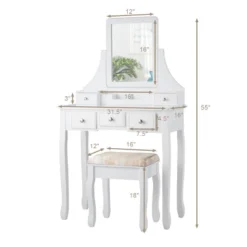 Tangkula Removable Tri-folding Mirror Vanity Table Unit Makeup Set W/ Stool & 4 Drawers