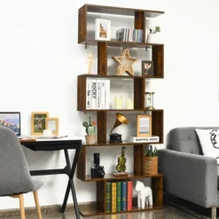 Tangkula 2 PCS 6-Tier S-Shaped Wooden Bookshelf Storage Bookcase Multifunctional Display Stand Shelf