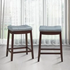 Tangkula Set Of 2 Saddle Bar Stools Bar Height Kitchen Chairs W/ Rubber Wood Legs