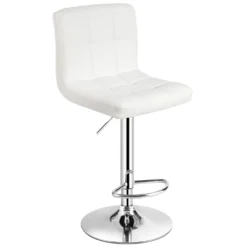 Tangkula Round Bar Stool 1 PC Adjustable Swivel Pub Chair U Leather With Footrest