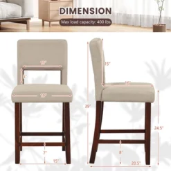 Tangkula Set Of 2 Bar Stools Counter Height Pub Chairs W/ PU Leather Seat&Rubber Wood Legs