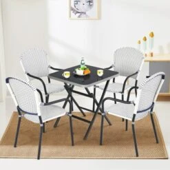 Tangkula 5PCS Patio Wicker Dining Set Outdoor Rattan Furniture Set W/ Cushion