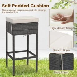 Tangkula 5PCS Wicker Bar Table Set W/ Hidden Storage Shelves Bar Table Stools Patio