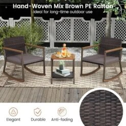 Tangkula 3PCS Rattan Rocking Chair Bistro Set Armrest Cushion Table W/ Storage Shelf Patio