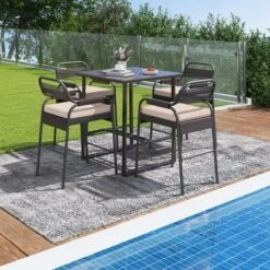Tangkula 5PCS Cast Aluminum Patio Bistro Set Outdoor Dining Table & Chair Furniture Set