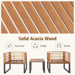 Tangkula 3PCS Furniture Set Acacia Wood Conversation Set W/ Soft Seat Cushions Outdoor White