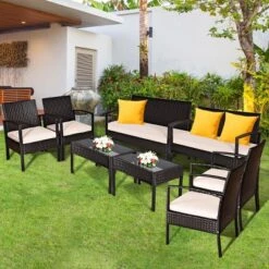 Tangkula 4-Piece Patio Rattan Wicker Conversation Furniture Set Sofa Chair Table Set