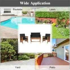 Tangkula 4PCS Patio Conversation Set Outdoor Furniture Set W/ Acacia Wood Frame