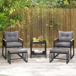 Tangkula 5 Piece Outdoor Furniture Set W/ Seat & Back Cushions Acacia Wood Tabletop
