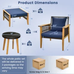Tangkula 5PCS Acacia Wood Wicker Woven Furniture Set W/ Coffee Table & 2 Ottomans Patio