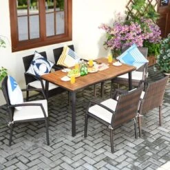 Tangkula 7PCS Patio Rattan Furniture Dining Set Wooden Table Cushioned Chair
