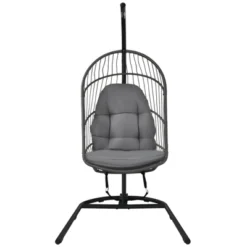 Tangkula Modern Rattan Hanging Egg Swing Chair W/Stand Foldable Cushioned Hammock Gray/Beige