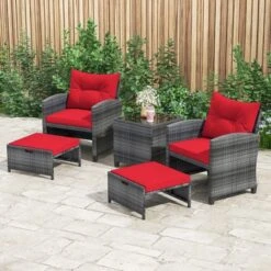 Tangkula 4PCS Rattan Patio Conversation Furniture Set Yard Outdoor W/ Grey Cushion