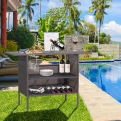 Tangkula Outdoor Garden Patio Rattan Wicker Dining Table Bar Table Shelves Furniture