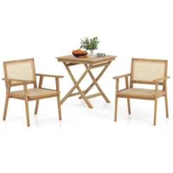 Tangkula 2PCS Wood Chair Teak Wood Armchair W/ Rattan Seat & Curved Backrest Dining Chair Patio
