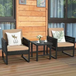 Tangkula 3-Piece Patio Wicker Bistro Set Conversation Furniture Sofa With Coffee Table