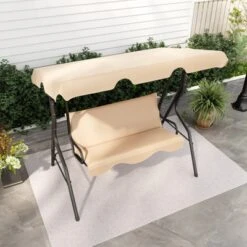 Tangkula 3-Person Swing Chair Porch Swing Seat W/ Adjustable Canopy Removable Cushion