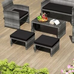 Tangkula 2 Pieces Patio PE Rattan Ottomans With Soft Zippered Cushions For Deck Frame