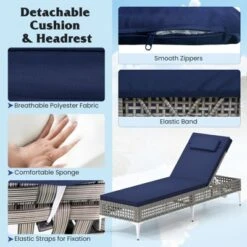 Tangkula Set Of 3 Chaise Lounge Chair Set Acacia Wood Frame Adjustable Backrest W/Cushions
