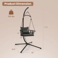 Tangkula Swing Chair W/ Stand Patio Hanging Swing Chair W/ Comfortable Seat & Back Cushions