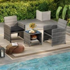 Tangkula 3 Pieces Patio Furniture Set PE Rattan Chairs Set W/ Storage Coffee Table