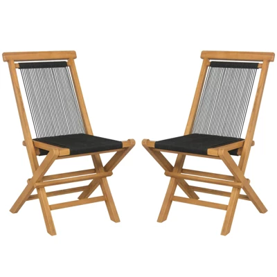 Enhance your outdoor living space with this elegant set of patio chairs. Constructed with premium teak wood, these chairs are long-lasting and crack-resistant for long-lasting enjoyment. The water-based varnished surface is easy to maintain and adds a touch of sophistication. The woven rope seat and back are not only visually appealing but also resistant to fading. Featuring a quick-folding design, these chairs can be conveniently stored or transported wherever needed. The high backrest and ergonomic angle ensure maximum relaxation, while the stable X-shaped structure and reinforced crossbar provide added stability. Enjoy ultimate outdoor comfort and style with these portable folding chairs.