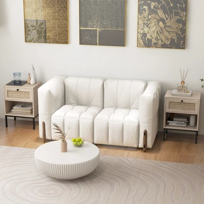 Enhance the beauty of your bedroom with this boho style nightstand! Classic rattan decorated drawer is both practical and visually appealing, providing a lovely contrast to the wood grain. Featuring tabletop, drawer and open shelf, this sofa side table provides versatile storage options for all your essentials. More, 4 sturdy metal legs offer strong support and stability. Aside from its rugged construction, the rattan end table is the perfect combination of functionality and aesthetics.