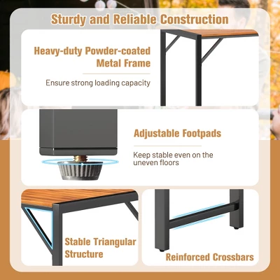 Enjoy Alfresco Dining Time and Create Unforgettable Memories with Your Family and Friends!Our outdoor dining set includes a large dining table and 2 wide benches, offering ample seating for family gatherings or al fresco dinners with friends. Crafted from sturdy acacia wood with a protective oil coating, this set is built to withstand the elements and provide years of reliable use. Furthermore, it is supported by heavy-duty powder-coated metal frames and adopts adjustable footpads, ensuring better stability on various outdoor terrains.