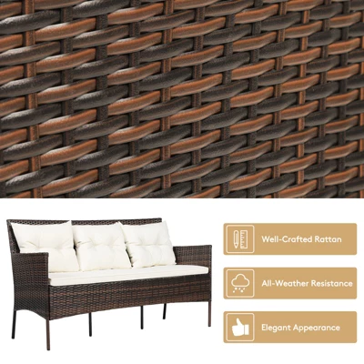 - 【Modern 3-Piece Patio Set】 Our patio sofa set, containing a long sofa, a sofa chair and a large table, are stylish and simple, which are suitable for any outdoor decoration. It is the best choice for your personal use or entertaining guests. The tempered glass on the tabletop ensures that it is more durable and increases the overall load-bearing capacity.