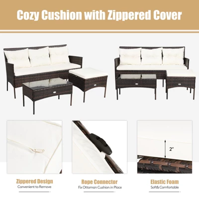 - 【Clean & Maintain with Ease】 The zippered covers on seat cushions and back cushions can be removed for easy cleaning. And PE wicker is glossy, easy to maintain with damp cloth. With non-slip foot pads, the bottom is not easy to wear or tear, adding stability and also protecting your floor from scratch.