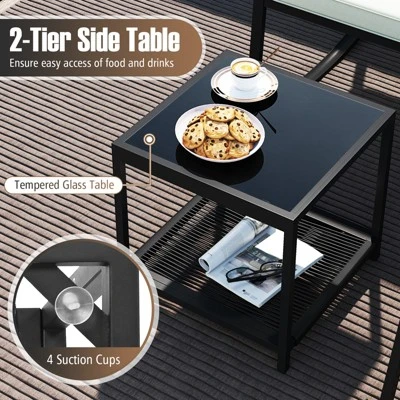 - Practical 2-Tier Side Table: Keep snacks and beverages within easy reach with the included dual-layer side table. The table boasts a tempered glass tabletop secured by 4 suction cups for stability, adding functionality and style to your patio setup.
