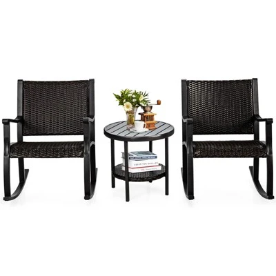 - Longer Outdoor Performance: Made of sun-protective and fade-resistant PE wicker and supported by the rustproof and sturdy metal frame, this rocking bistro set ensures higher durability and stronger stability in changing outdoor environments.