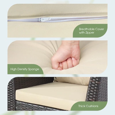 - 【Simple Cleaning & Maintenance】 Requiring low maintenance, the PE rattan can restore luster after cleaning the dirt deposited on the surface with wet cloth, no worry about split, fade or rot. Zippered cushion covers are made from non-woven fabrics instead of ordinary polyester, more breathable and easy to detach and clean.