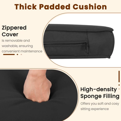 - Easy Maintenance: The zippered cushion covers can be easily removed and washed, ensuring the bistro conversation set always looks fresh and inviting. Additionally, the tempered glass is smooth and easy to clean, and lets you enjoy hassle-free upkeep.