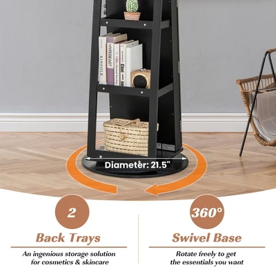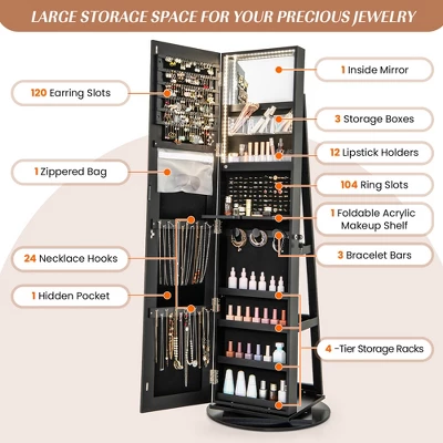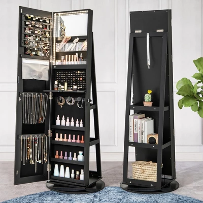 - 【360° Swivel Base & 3 Back Storage Shelves】: Enjoying with the 360 degree swivel base, the mirrored jewelry organizer is more flexible to meet your different needs. 3 back storage shelve of the jewelry cabinet can store your handbag, books or other items, and they can also make the jewelry organizer more stable.