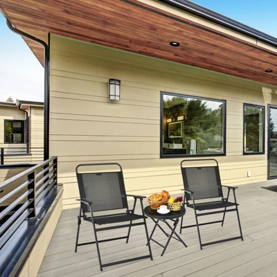 - No Need to Install: Thanks to the foldable design, this patio bistro set can be used without installation. Foldable table and chairs are convenient for you to use, and will not take up too much storage space. The light weight design allows you to take it wherever you go.