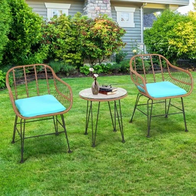 - 【Excellent Durability & Stability】 Featuring with all-weather PE rattan and powder-coated steel frame, this 3 pieces patio conversation chair set can be used for a long time. What’s more, both the table and chairs are equipped with non-slip foot pads to enhance overall stability and protect the floor from scratches.