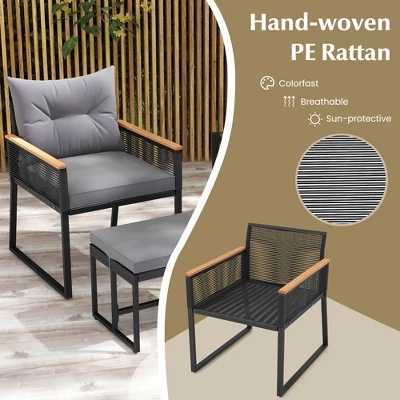 - Sturdy & Reliable PE Rattan: The PE rattan wicker used in this patio furniture set is meticulously hand-woven to ensure both durability and visual appeal. Its high-quality construction provides colorfast properties, breathability, and resistance to sun damage, making it ideal for outdoor use.