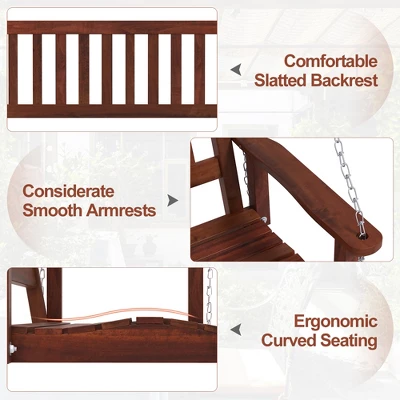 - User-oriented Details: Boasting a spacious and ergonomic curved seating, this outdoor porch swing offers you a cozy sitting experience. Besides, the comfortable slatted backrest and considerate smooth armrests provide more support for your body.