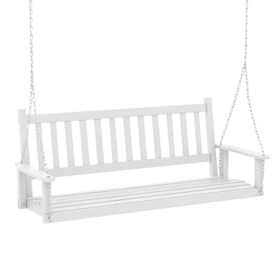 Indulge in ultimate relaxation with our 3-person outdoor wooden porch swing!This 5FT porch hanging swing is made of natural and solid poplar wood with PU finish, which is suitable for outdoor use. Moreover, the swing bench comes with galvanized metal chains, solid hooks and sturdy eyebolts for easy setup. And the hanging chains are adjustable to suit your various needs. You are able to place it on the tree, stand, ceiling, etc. Additionally, the hanging swing chair supports 3 people up to 800 LBS. Thanks to the spacious sitting area, slatted backrest and smooth armrests, the 3-person porch swing allows you to sit comfortably. Furthermore, installation is a breeze with an easy-to-follow user’s manual.