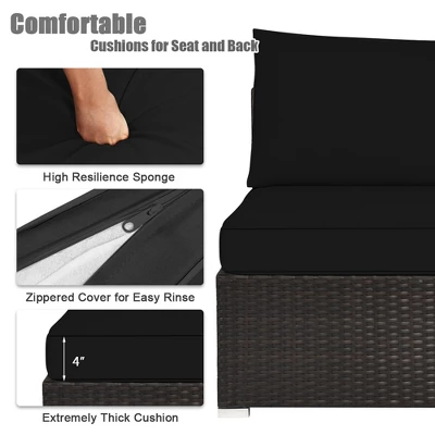 - Comfortable Design: Equipped with five padded seat cushions, six back cushions, the set will provide excellent comfort for you. The sponge in the cushion has high elasticity and the thickness of seat cushion is 4 inches. You won’t feel tired if you sit or rest on the sofa for long time. The covers can be taken off for convenient rinse.