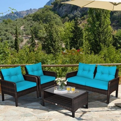 - Sturdy Frame & Hand-Woven Rattan: This patio furniture set is made with a powder-coated steel frame and all-weather PE wicker for a comfortable experience. Besides, high quality rattan is weather-resistant and fade-resistant, which ensures that this furniture can service you long time. Adjustable non-slip feet enhance extra stable.