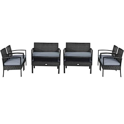 Our 8 pieces patio furniture set includes 2 coffee tables, 4 single chairs and 2 loveseat, which is great for various outdoor living spaces such as backyards, gardens, and poolside!