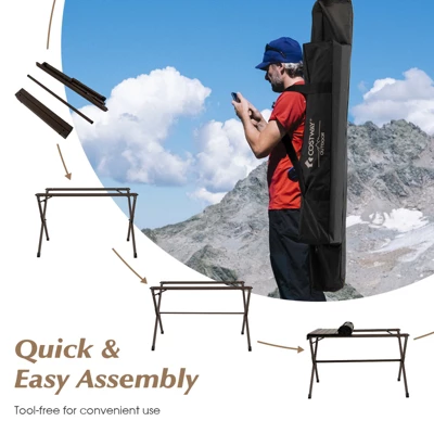 High quality aluminium frame with stable structure offer strong support to hold up to 176 lbs. And the spacious tabletop can accommodate 4 to 6 people at the same time. You can place water buckets, cooler bags or just a stove on it to cook or boil water. Besides, the rustproof and waterproof surface is easy to clean. With folding design, this camping table with compact size allows you to take it anywhere you want. There is a carry bag for convenient use. Moreover, it takes no time to set up and take down with flexible buckle and roll-up tabletop.