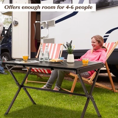 - 【Aluminum Table with Stable Frame:】Our camping table with premium aluminum frame is durable enough to stand the test of time, which is waterproof and rustproof for outdoor use. Besides, the sturdy X-shaped structure with non-slip foot pads ensure overall stability. Max weight capacity: 176 lbs.
