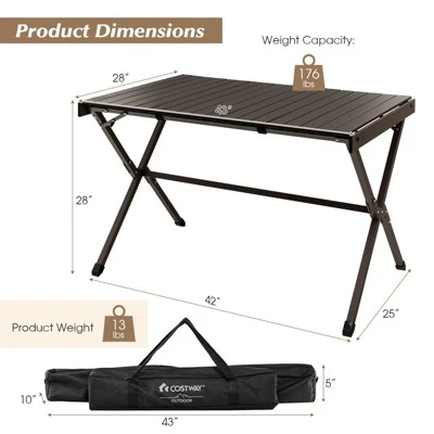 - 【Compact & Portable Design:】The camping tables only weigh 13 lbs thanks to the lightweight aluminum frame, which allows you to take it anywhere you want. With compact size and folding design, this camping table will take up less space when not in use. And the carry bag with a handle makes it easy to transport.