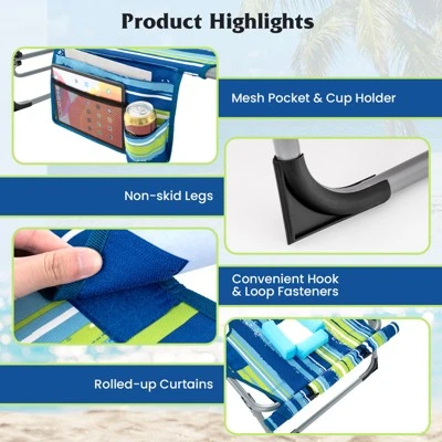 Our beach chaise lounge chair is really a a complete lounger with a soft cushioned pillow and a face hole who are tanning lovers! Made of high-quality oxford fabric, this sunbathing recliner is sturdy enough to stand the test of time. The premium metal frame is durable and heavy duty for both indoors and outdoors with a load-bearing capacity of up to 400 lbs. Featuring 5 different backrest positions and 2 adjustable leg positions, the patio lounge chair provides extraordinary comfort and relaxation for you. When not in use, the chaise lounge chair can be folded into a compact size in seconds. Can be used both indoors and outdoors, such as beach, office, yard, lawn, etc.