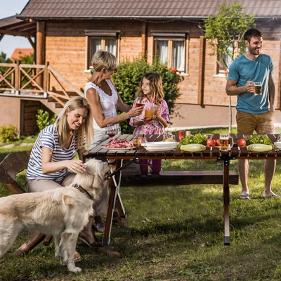 Our folding camping table measures 48″ x 23.5″ and can carry up to 110 lbs, making it perfect for outdoor picnics, parties or barbecues with family or friends. The picnic table is made of high quality bamboo, which is waterproof, scratch-resistant and odorless, ensuring long-term use. And the natural style makes it a perfect addition to both indoor and outdoor settings. In addition, the tabletop features fillet design without burrs to prevent accidental injuries. Besides, the folding table has 6 sturdy X-shaped support legs and protective foot caps to ensure more reliable stability. What’s more, our camping table is easy to install and fold, so you can quickly store it in a portable bag and carry it to the lake, park, or beach to enjoy a cozy time.