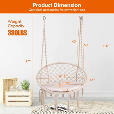 - Complete Accessories Included: Equipped with a hanging strap, a carabiner and a S-shaped hook, the assembly of the swing chair can be completed in a short time. Those reinforced hanging hardware kits offer strong support for the whole swing chair, which can hold up to 330 lbs without any deformation.