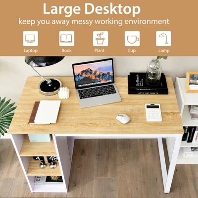 Have you found a favored computer desk for your working,studying and reading? Our office desk would be worth considering. The office desk comes with spacious desktop to ensure optimal workspace and keep office essentials with reach. 5 cubbies enlarge storage space and are easy to classify different kinds of items,so as to free up more tabletop space. Its sturdy enough structure leaves you no worry about load bearing capacity and using reliability. This well-designed office desk combines chic style,comfortable working experience and practical use all into one,which is an ideal choice for your home and office.